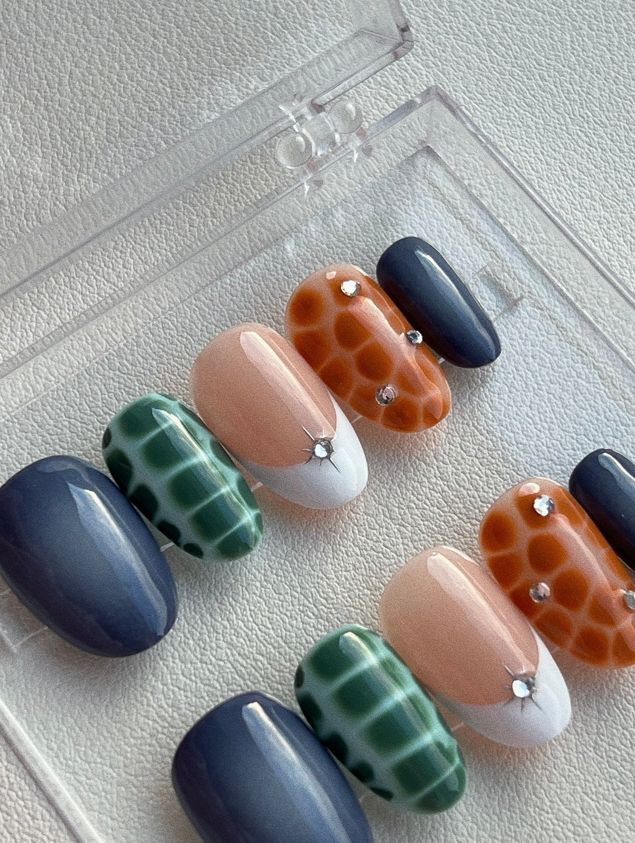 Each order includes a set of 10 nails, meticulously crafted using premium gel brands such as OPI, Gel Bottle, Aprés, and DND Gel.